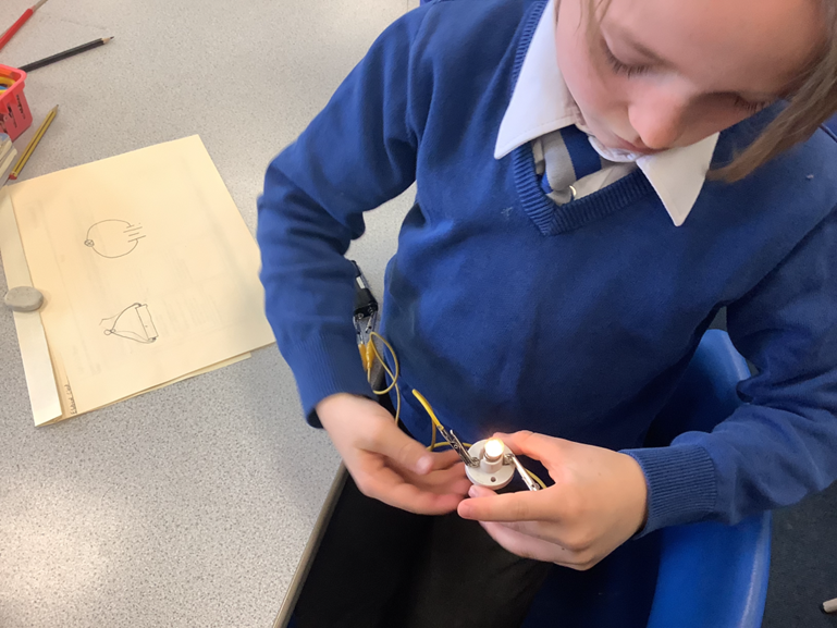 Year 3 built simple electrical circuits as part of their DT process to create light-up boxes. They learned how to connect batteries, wires, and bulbs safely so the lights would turn on. By testing and improving their circuits, the children discovered how electricity flows and how their designs could work successfully inside their boxes.