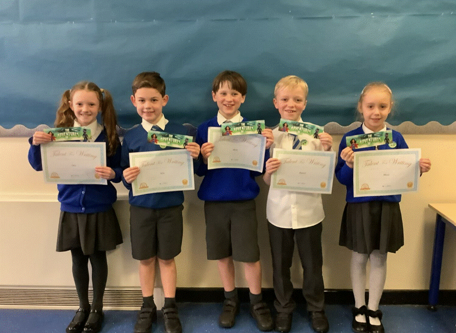 Some Year 3 children took part in the Younger Writers competition, where they were challenged to write an exciting adventure story within a set word limit. The children used their imagination and creativity to develop characters, settings and problems, carefully choosing their words to fit the limit. They showed great enthusiasm and effort, and it was a wonderful opportunity for them to develop their writing skills and confidence as young authors.