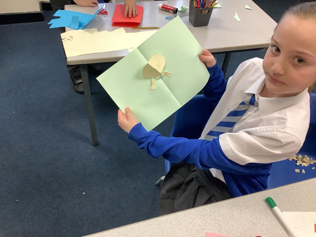 In our DT lesson on pop-up books, we focused on experimenting with different pop-out objects. We tested a range of mechanisms, such as folds, tabs, and levers, to see how they helped shapes and pictures pop out from the page. Through this hands-on experimenting, we learned which mechanisms worked best and how changing the size or position affected how the objects moved.