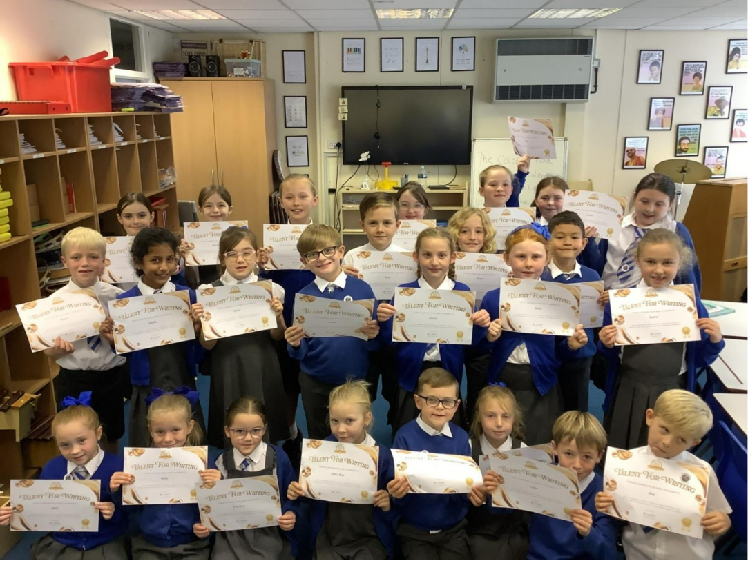 Some Year 3 children took part in the Younger Writers competition, where they were challenged to write an exciting adventure story within a set word limit. The children used their imagination and creativity to develop characters, settings and problems, carefully choosing their words to fit the limit. They showed great enthusiasm and effort, and it was a wonderful opportunity for them to develop their writing skills and confidence as young authors.